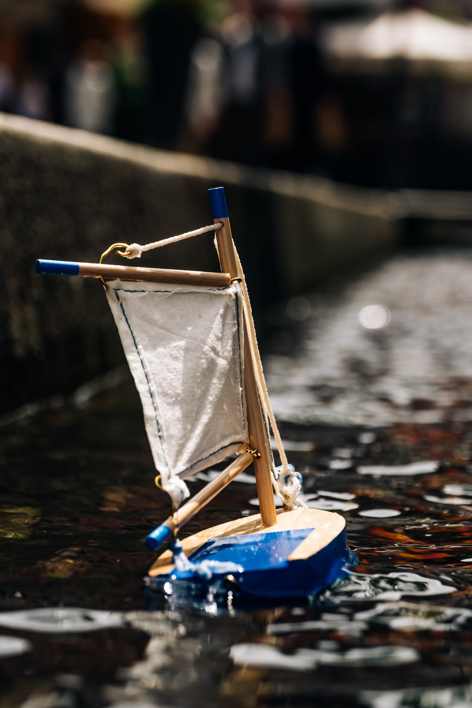 In a narrow stream somewhere in Germany, where stone walls guide the water and time moves slower than the current, a small boat drifts with quiet determination. It is not seaworthy, not brave by design, yet it carries a sail stitched with care and hope rather than skill.