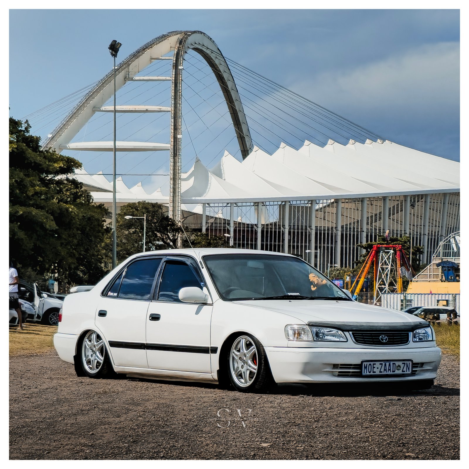 This photo of Shezaad Khans Corolla on Air suspension was taken at the people park near Moses Mabhida Stadium in early January this year at the January Dubai Souk and Chettys Fun fair fundraiser in Durban.
