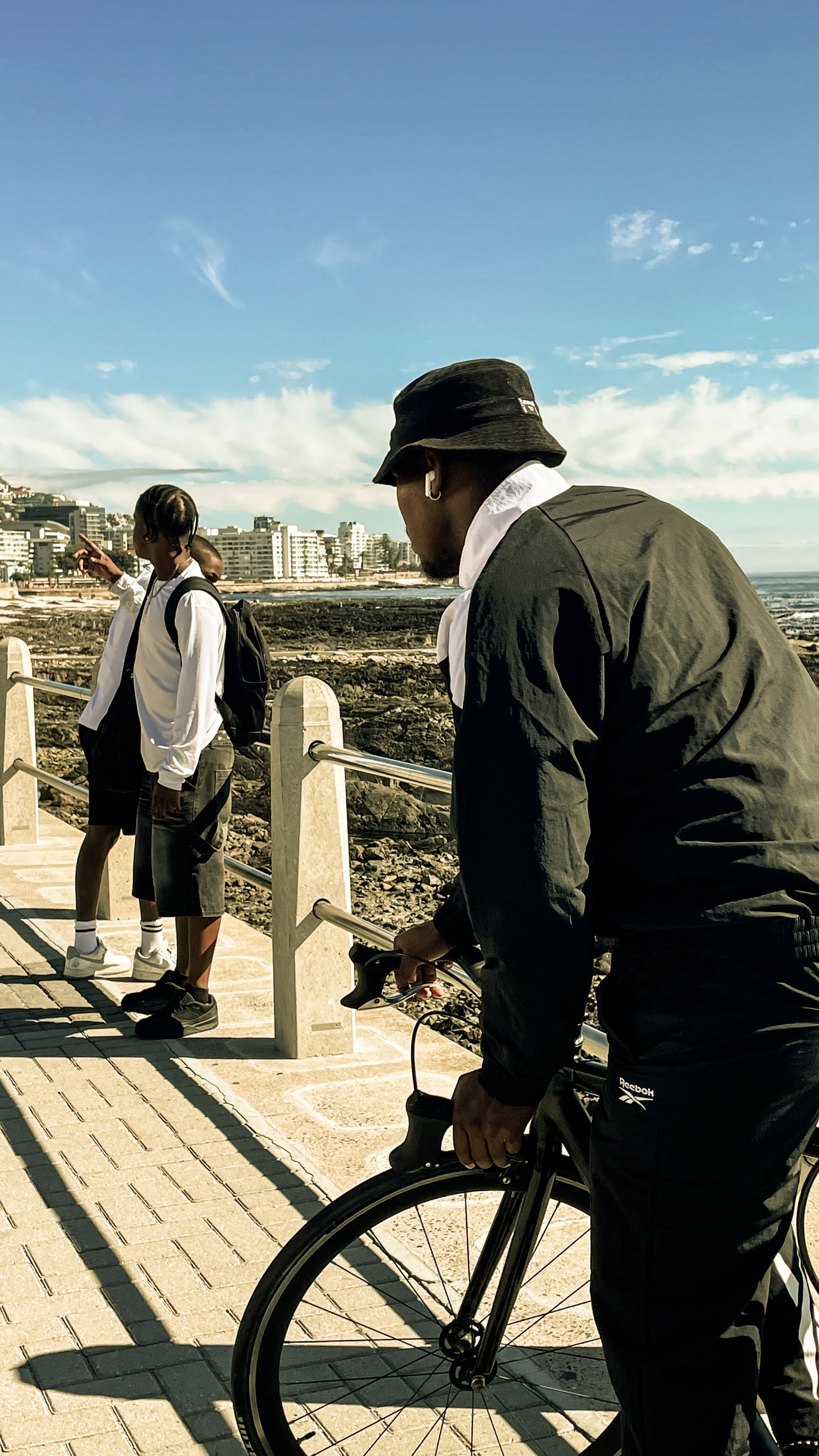 This picture was taken on a Friday afternoon near clear waters during a fashion videoshoot, it was taken to be remembered one day as where we started and where it is all going which is shown by the way everyone is focused on the view forward